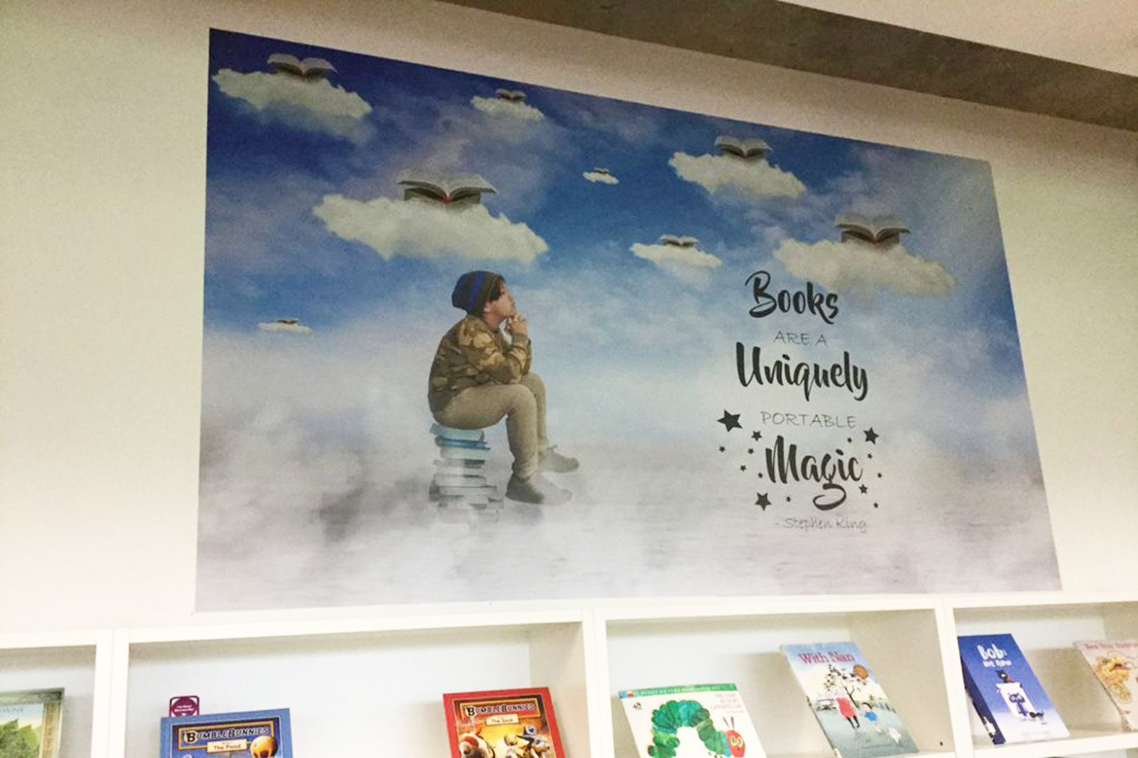 Our range of wall graphics and wall murals are available in a range of colours and designs to suit every library space. Designs and