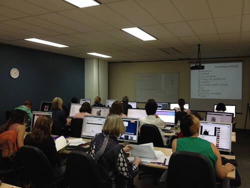Curating Digital Collections for the Australian Curriculum is a full-day, hands-on workshop facilitated by Lyn Hay, Syba Academy’s Head of Professional Learning. The workshop is designed to provide teachers and TLs with the capacity to resource specific topics of the Australian Curriculum by creating customised collections of digital resources using a range of curation tools. The program structure allows participants to undertake hands-on activities within every session of the day. On Friday, our participants were up to the elbows exploring curation sites on their PCs well before morning tea.